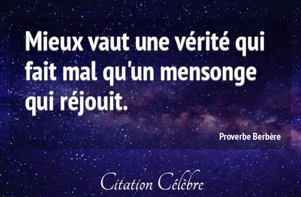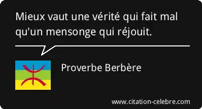 - Lien avec le courage : Il est en opposition avec l'idée d'un « pieux mensonge », un mensonge que l'on justifierait par l'intention de protéger autrui d'une souffrance trop grande. Le proverbe berbère soutient, lui, que ce courage de la vérité est toujours supérieur.