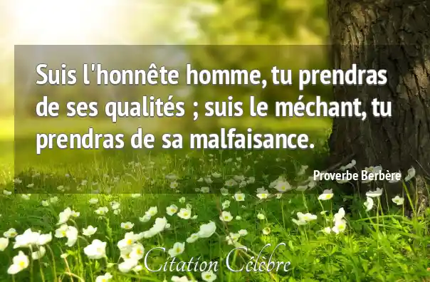 Proverbe  Berbère Homme : Suis l'honnête homme, tu prendras de ses qualités ; suis...