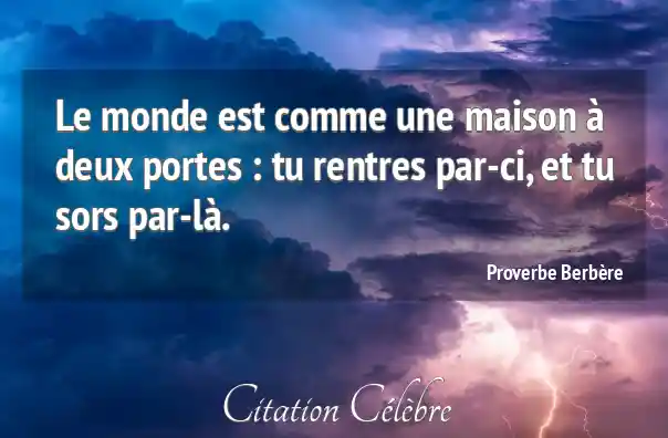 Le monde est comme une maison à deux portes : tu rentres par-ci, et tu sors par-là.
