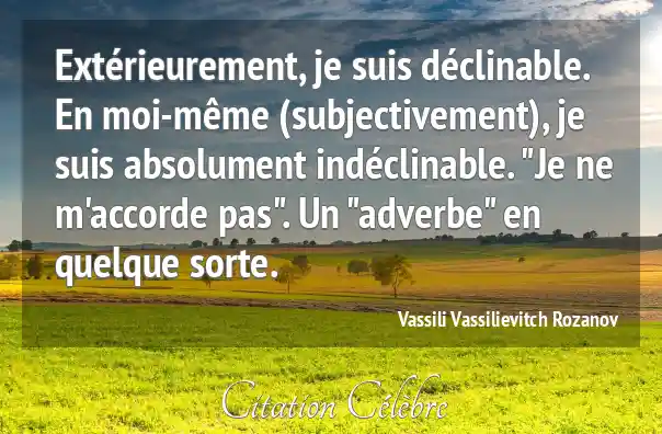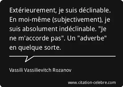 Extérieurement, je suis déclinable. En moi-même (subjectivement), je suis absolument indéclinable. "Je ne m'accorde pas". Un "adverbe" en quelque sorte.