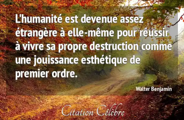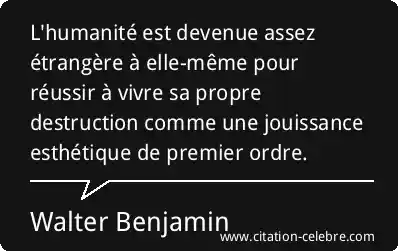 L'humanité est devenue assez étrangère à elle-même pour réussir à vivre sa propre destruction comme une jouissance esthétique de premier ordre.