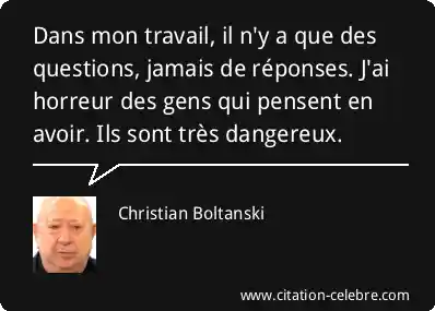 Dans mon travail, il n'y a que des questions, jamais de réponses. J'ai horreur des gens qui pensent en avoir. Ils sont très dangereux.