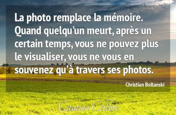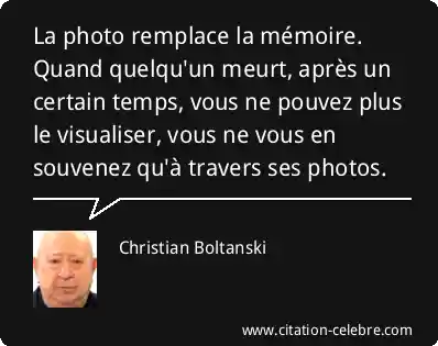 La photo remplace la mémoire. Quand quelqu'un meurt, après un certain temps, vous ne pouvez plus le visualiser, vous ne vous en souvenez qu'à travers ses photos.