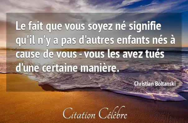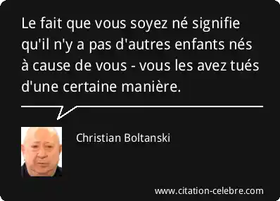Le fait que vous soyez né signifie qu'il n'y a pas d'autres enfants nés à cause de vous - vous les avez tués d'une certaine manière.