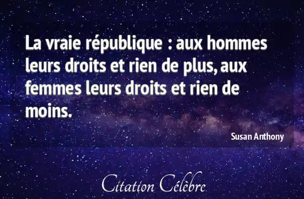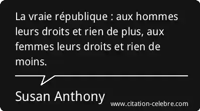 La vraie république : aux hommes leurs droits et rien de plus, aux femmes leurs droits et rien de moins.