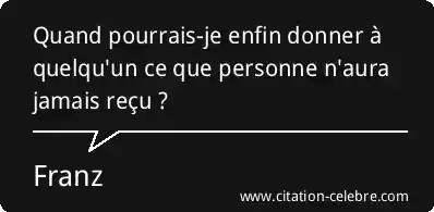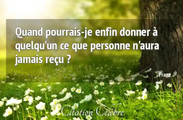 Quand pourrais-je enfin donner à quelqu'un ce que personne n'aura jamais reçu ?