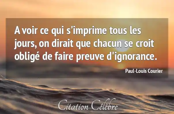 A voir ce qui s'imprime tous les jours, on dirait que chacun se croit obligé de faire preuve d'ignorance.