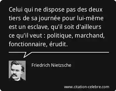 Celui qui ne dispose pas des deux tiers de sa journée pour lui-même est un esclave, qu'il soit d'ailleurs ce qu'il veut : politique, marchand, fonctionnaire, érudit.