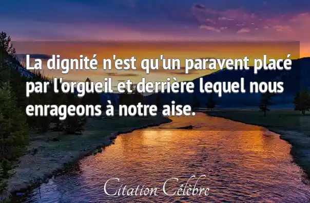 La dignité n'est qu'un paravent placé par l'orgueil et derrière lequel nous enrageons à notre aise.