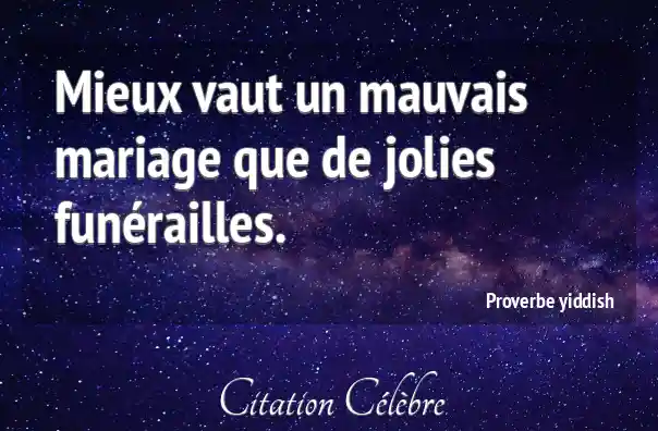 Mieux vaut un mauvais mariage que de jolies funérailles.