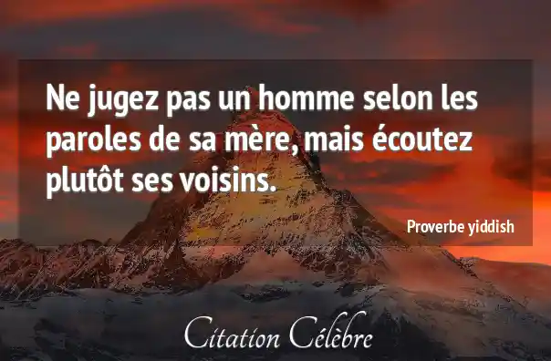 Ne jugez pas un homme selon les paroles de sa mère, mais écoutez plutôt ses voisins.