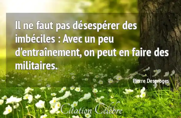 Il ne faut pas désespérer des imbéciles : Avec un peu d'entraînement, on peut en faire des militaires.