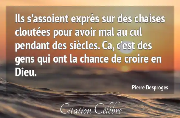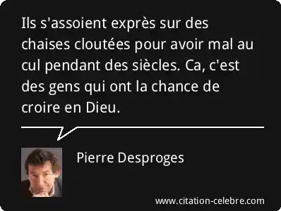 Ils s'assoient exprès sur des chaises cloutées pour avoir mal au cul pendant des siècles. Ca, c'est des gens qui ont la chance de croire en Dieu.