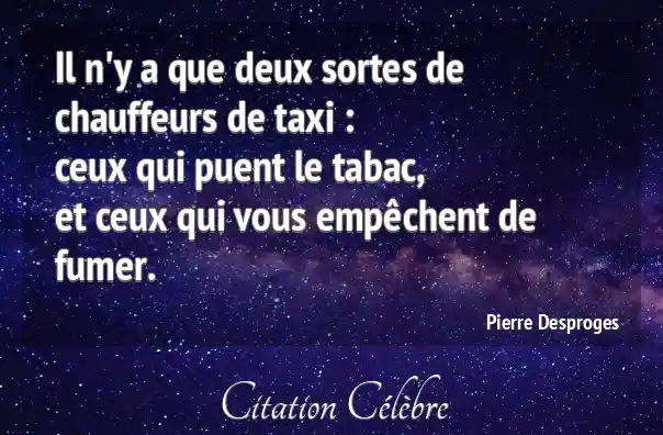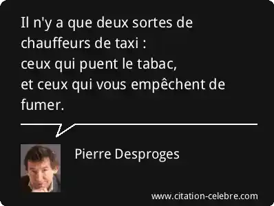 Il n'y a que deux sortes de chauffeurs de taxi :ceux qui puent le tabac,et ceux qui vous empêchent de fumer.