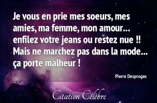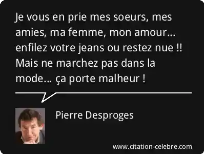 Je vous en prie mes soeurs, mes amies, ma femme, mon amour... enfilez votre jeans ou restez nue !! Mais ne marchez pas dans la mode... ça porte malheur !
