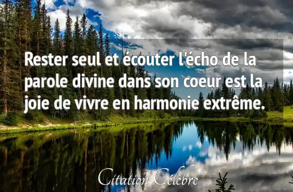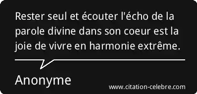 Rester seul et écouter l'écho de la parole divine dans son coeur est la joie de vivre en harmonie extrême.