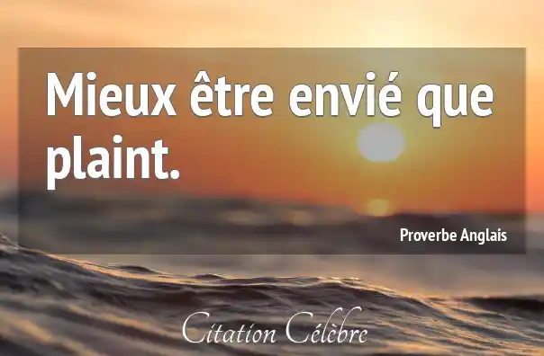 Mieux être envié que plaint.