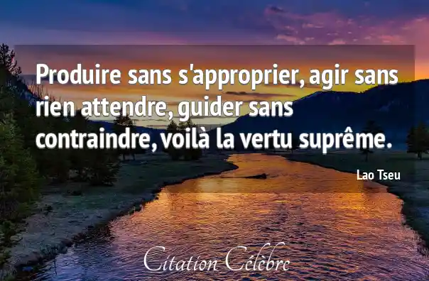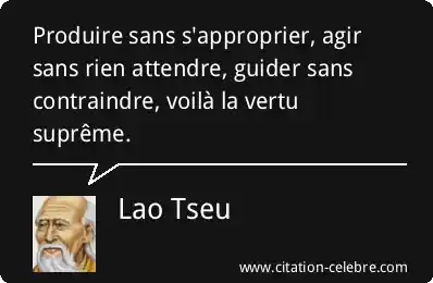Produire sans s'approprier, agir sans rien attendre, guider sans contraindre, voilà la vertu suprême.