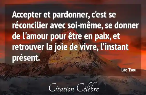 Accepter et pardonner, c'est se réconcilier avec soi-même, se donner de l'amour pour être en paix, et retrouver la joie de vivre, l'instant présent.