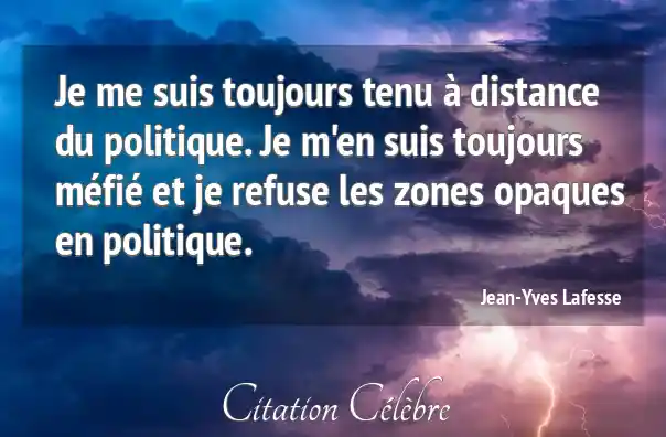Je me suis toujours tenu à distance du politique. Je m'en suis toujours méfié et je refuse les zones opaques en politique.