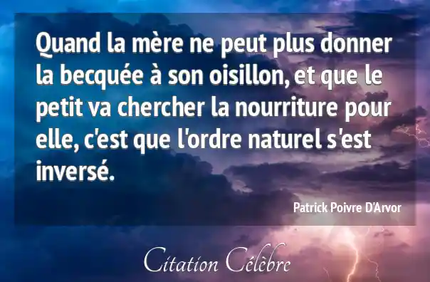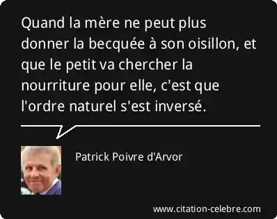 Quand la mère ne peut plus donner la becquée à son oisillon, et que le petit va chercher la nourriture pour elle, c'est que l'ordre naturel s'est inversé.