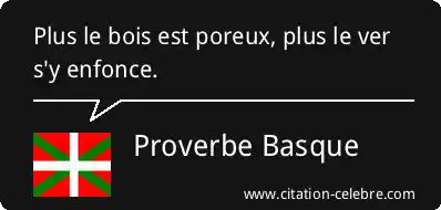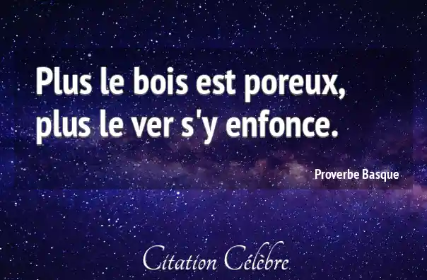 Proverbe  Basque Bois : Plus le bois est poreux, plus le ver s'y enfonce....