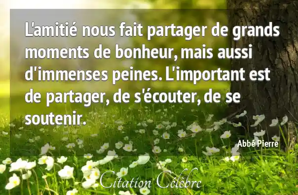 L'amitié nous fait partager de grands moments de bonheur, mais aussi d'immenses peines. L'important est de partager, de s'écouter, de se soutenir.