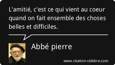 L'amitié, c'est ce qui vient au coeur quand on fait ensemble des choses belles et difficiles.