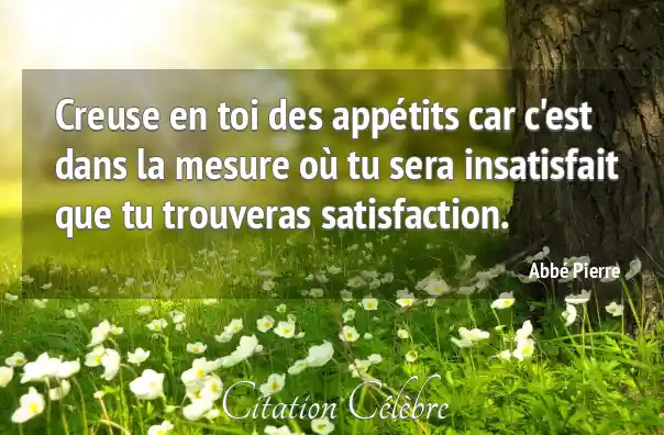 Creuse en toi des appétits car c'est dans la mesure où tu sera insatisfait que tu trouveras satisfaction.