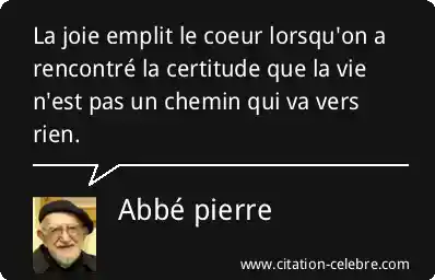 La joie emplit le coeur lorsqu'on a rencontré la certitude que la vie n'est pas un chemin qui va vers rien.