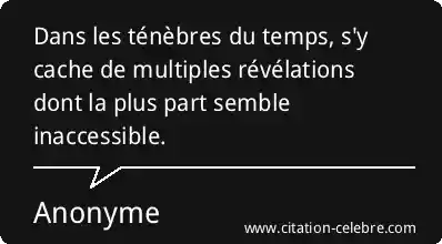 Dans les ténèbres du temps, s'y cache de multiples révélations dont la plus part semble inaccessible.