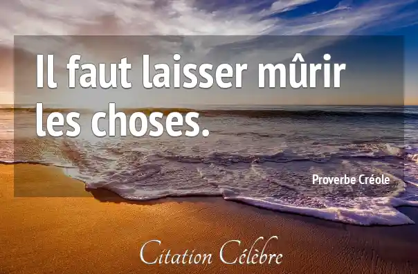 Il faut laisser mûrir les choses.