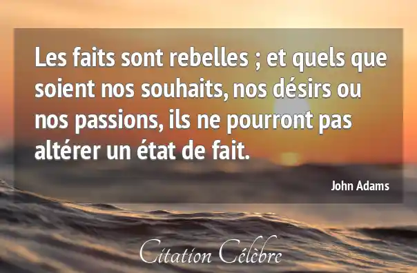 Les faits sont rebelles ; et quels que soient nos souhaits, nos désirs ou nos passions, ils ne pourront pas altérer un état de fait.