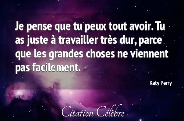 Je pense que tu peux tout avoir. Tu as juste à travailler très dur, parce que les grandes choses ne viennent pas facilement.