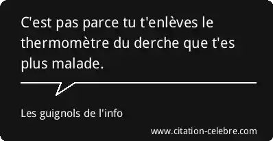 C'est pas parce tu t'enlèves le thermomètre du derche que t'es plus malade.