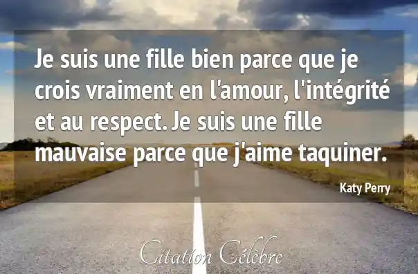 Je suis une fille bien parce que je crois vraiment en l'amour, l'intégrité et au respect. Je suis une fille mauvaise parce que j'aime taquiner.