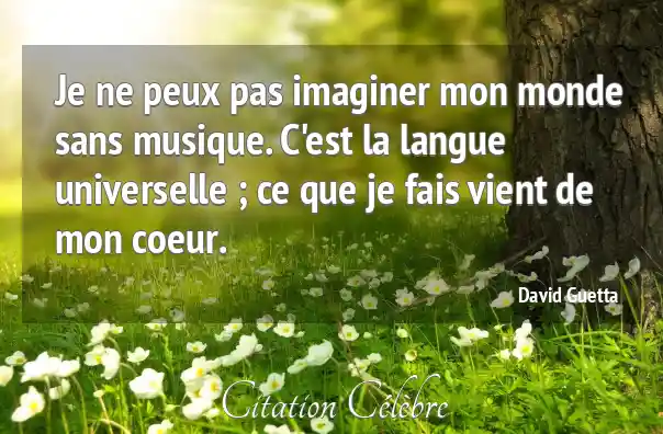 Je ne peux pas imaginer mon monde sans musique. C'est la langue universelle ; ce que je fais vient de mon coeur.
