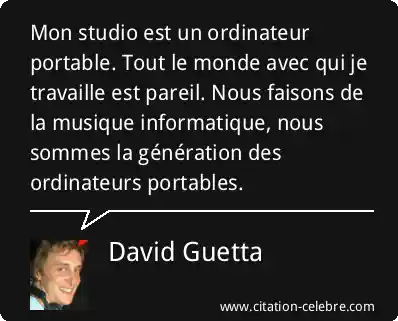 Mon studio est un ordinateur portable. Tout le monde avec qui je travaille est pareil. Nous faisons de la musique informatique, nous sommes la génération des ordinateurs portables.