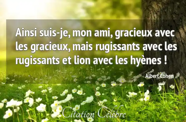 Ainsi suis-je, mon ami, gracieux avec les gracieux, mais rugissants avec les rugissants et lion avec les hyènes !