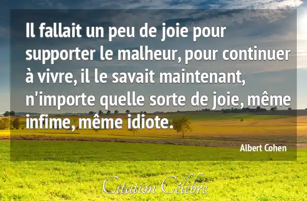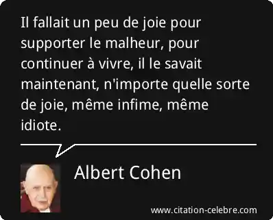 Il fallait un peu de joie pour supporter le malheur, pour continuer à vivre, il le savait maintenant, n'importe quelle sorte de joie, même infime, même idiote.