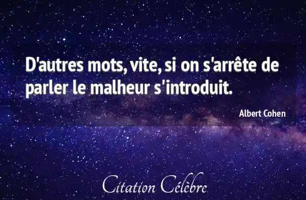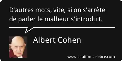 D'autres mots, vite, si on s'arrête de parler le malheur s'introduit.