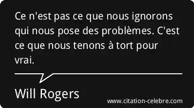 Ce n'est pas ce que nous ignorons qui nous pose des problèmes. C'est ce que nous tenons à tort pour vrai.