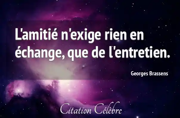 Citation Georges Brassens amitie : L'amitié n'exige rien en échange, que de l'entretien....