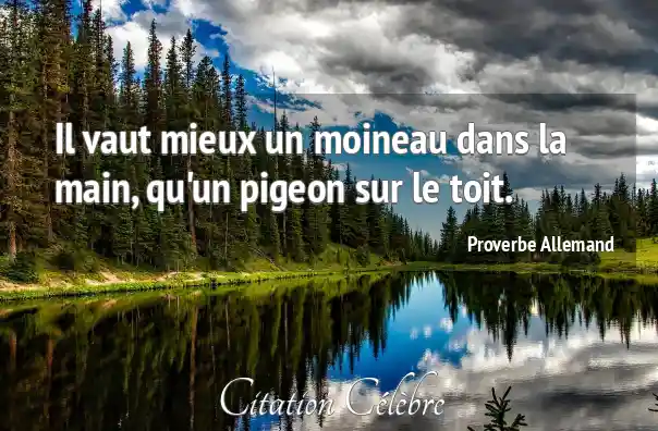 Il vaut mieux un moineau dans la main, qu'un pigeon sur le toit.