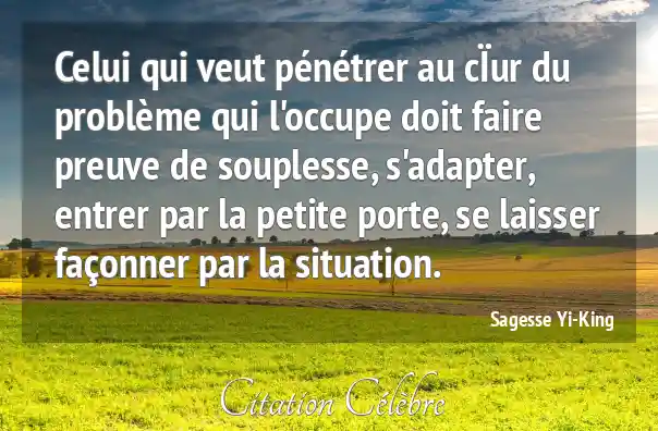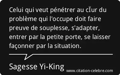 Celui qui veut pénétrer au cÏur du problème qui l'occupe doit faire preuve de souplesse, s'adapter, entrer par la petite porte, se laisser façonner par la situation.