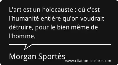 L'art est un holocauste : où c'est l'humanité entière qu'on voudrait détruire, pour le bien même de l'homme.