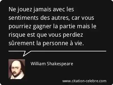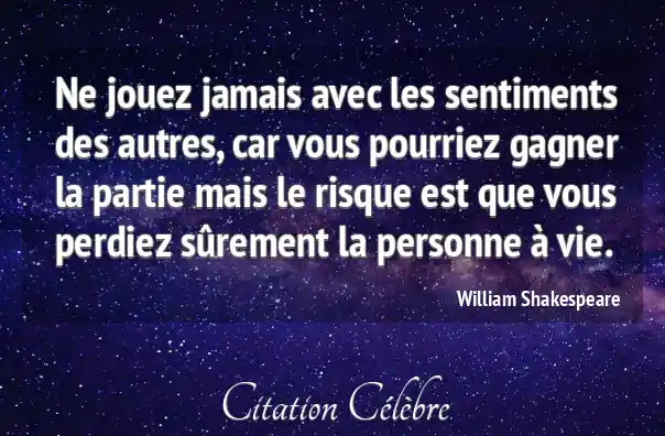 Ne jouez jamais avec les sentiments des autres, car vous pourriez gagner la partie mais le risque est que vous perdiez sûrement la personne à vie.