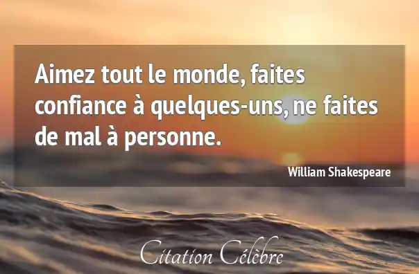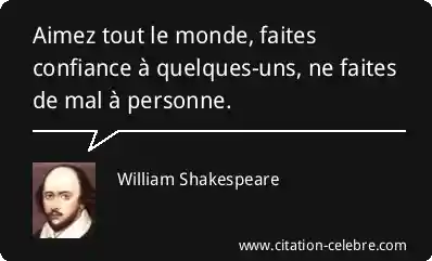 Aimez tout le monde, faites confiance à quelques-uns, ne faites de mal à personne.