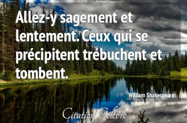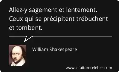 Allez-y sagement et lentement. Ceux qui se précipitent trébuchent et tombent.