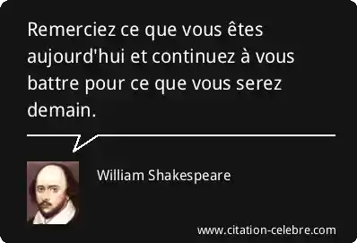 Remerciez ce que vous êtes aujourd'hui et continuez à vous battre pour ce que vous serez demain.